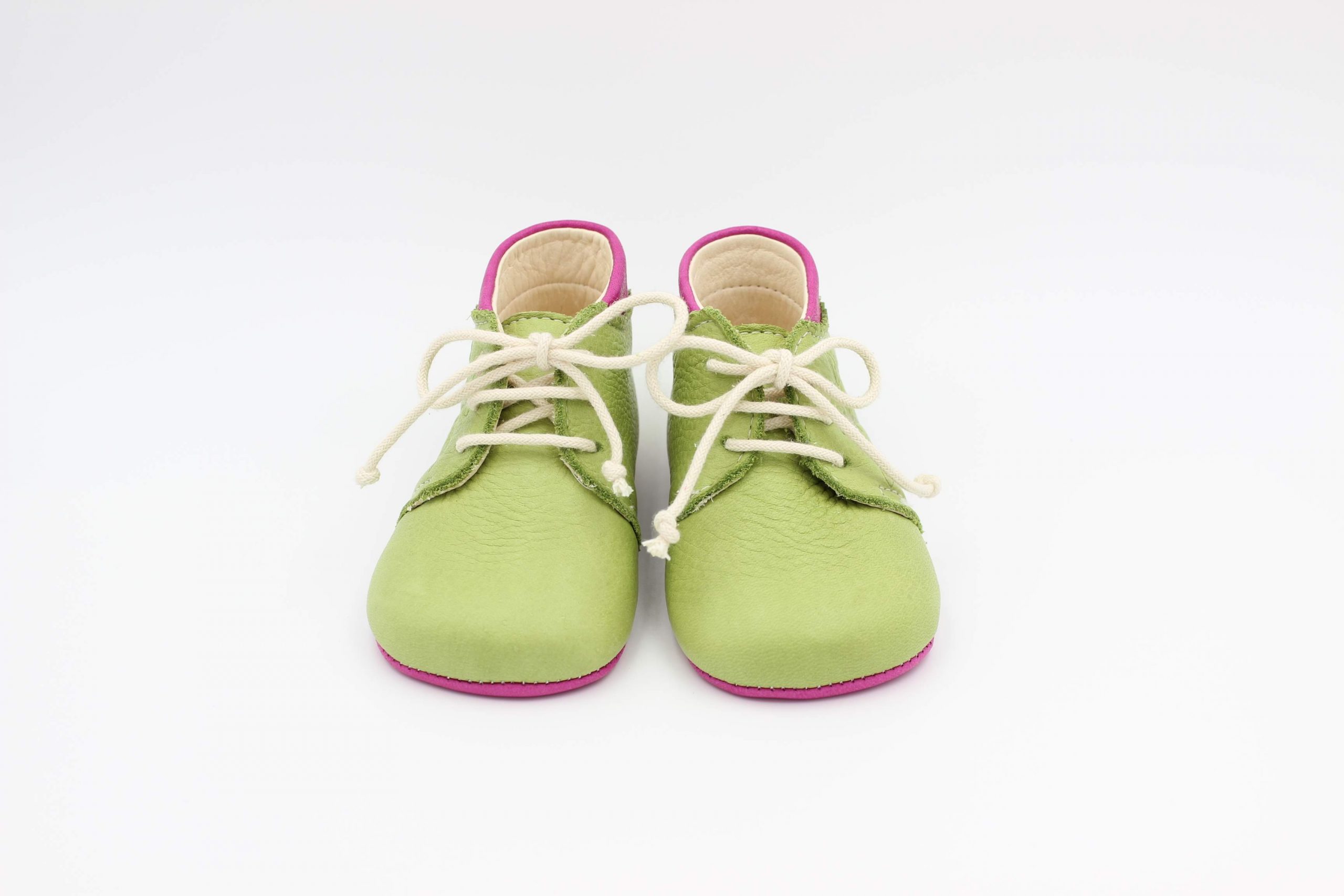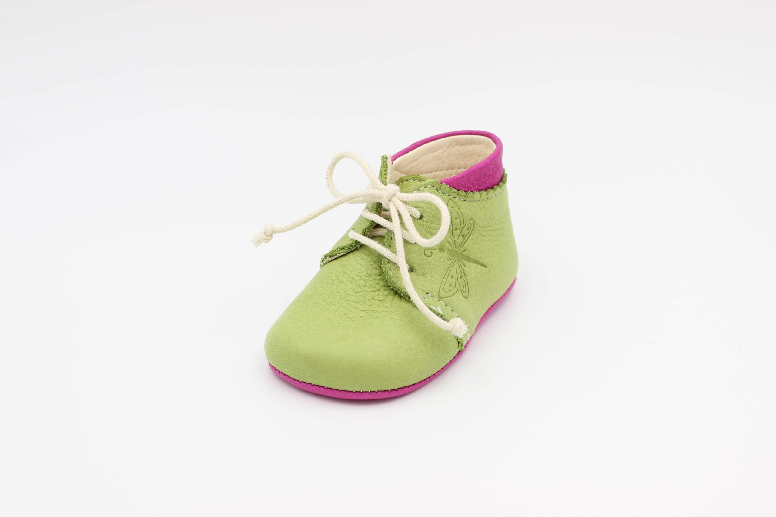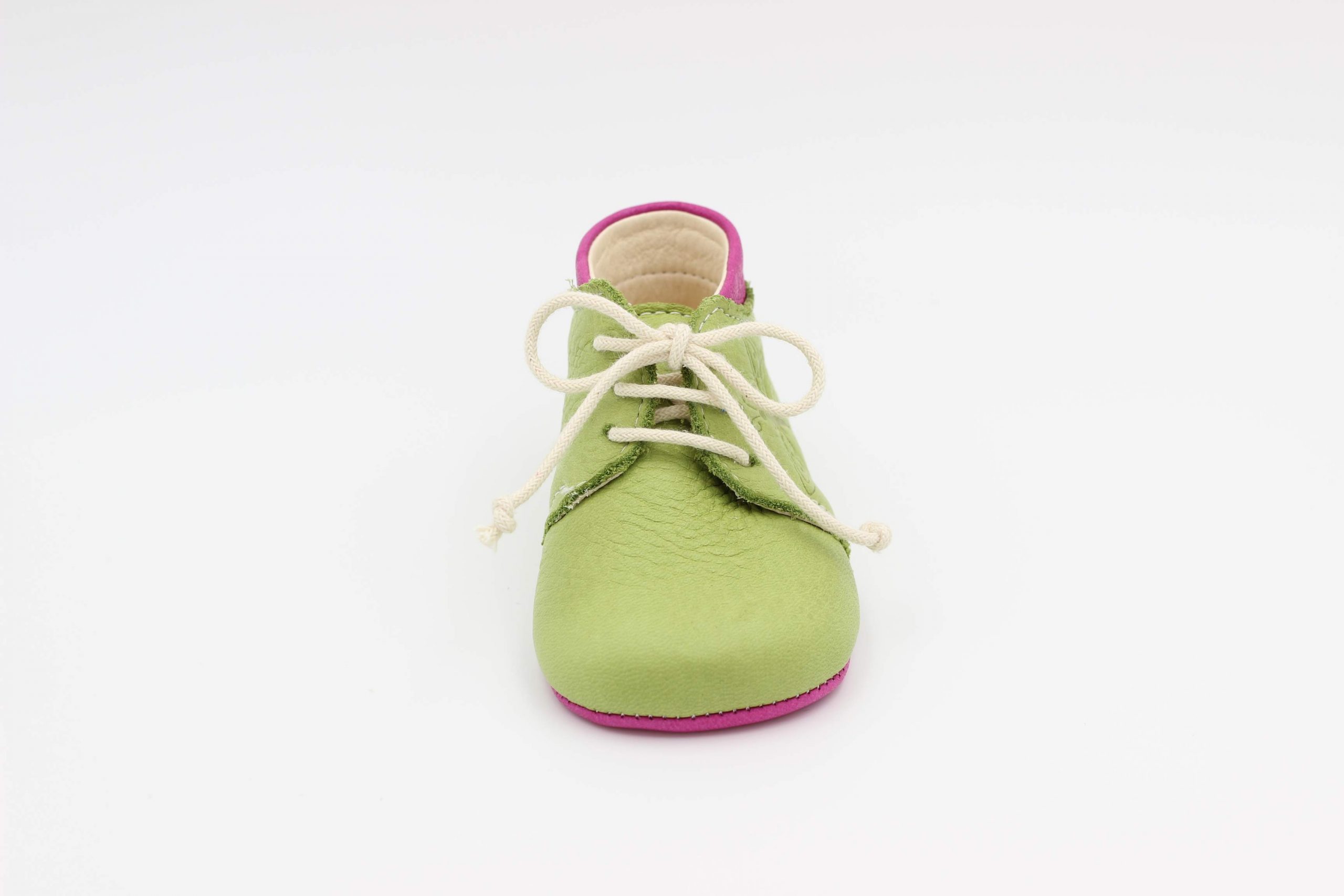 Viento para mover tus alas y llevar tu pie al interior de esta preciosa botita con adorno de festón en la caña y perfecto cierre de cordones. Vendaval de colores para alegrar la mirada de tu Bebé.
