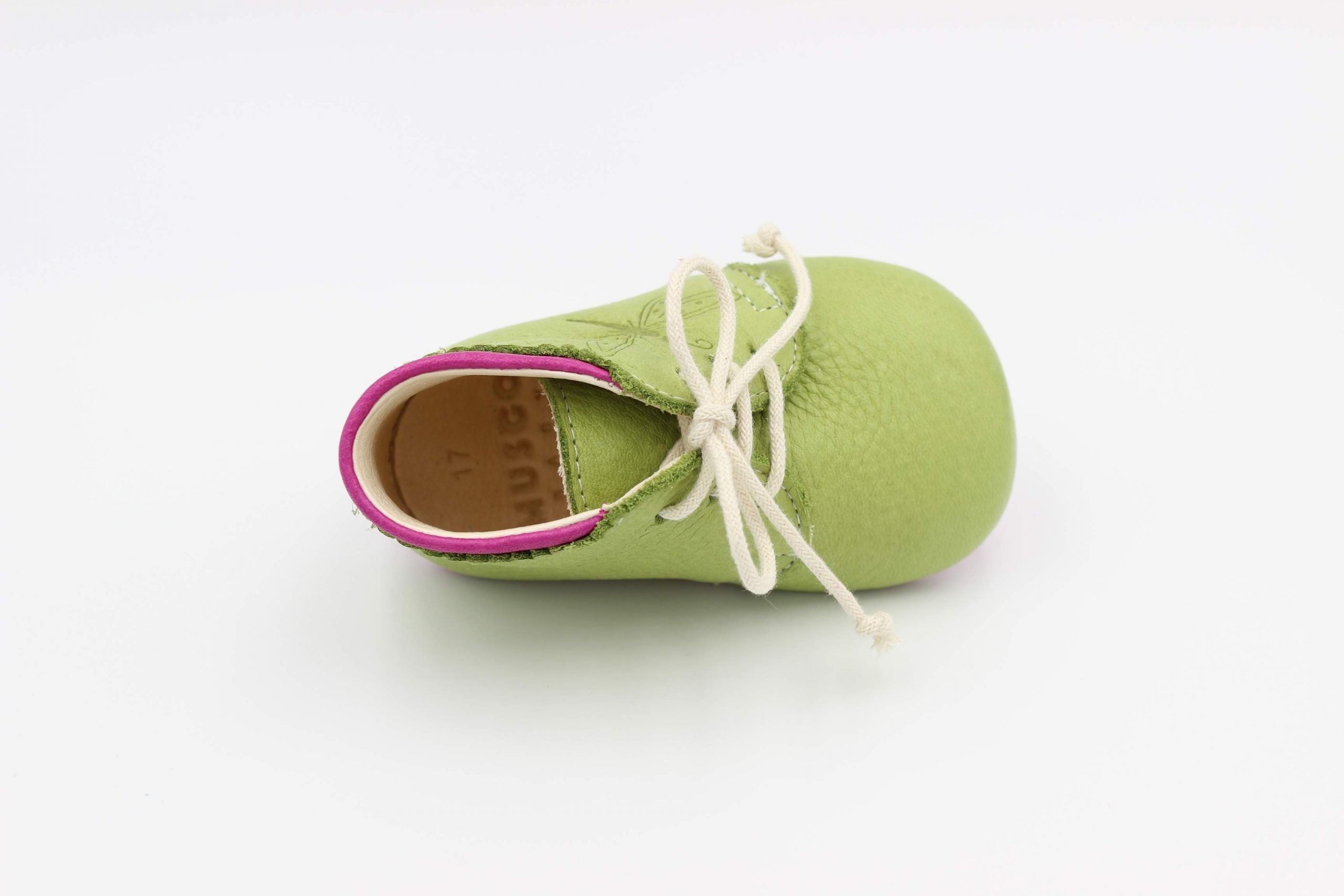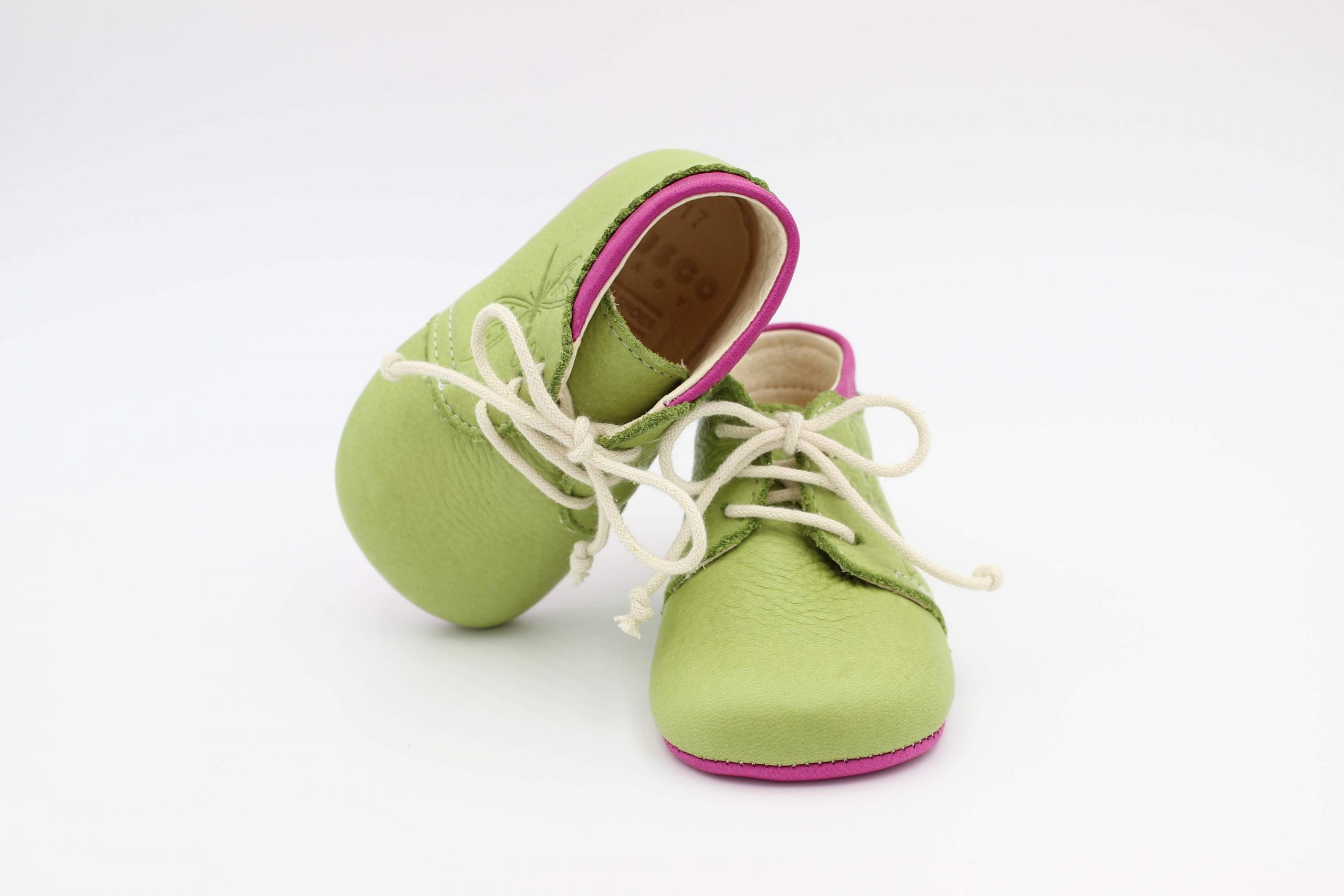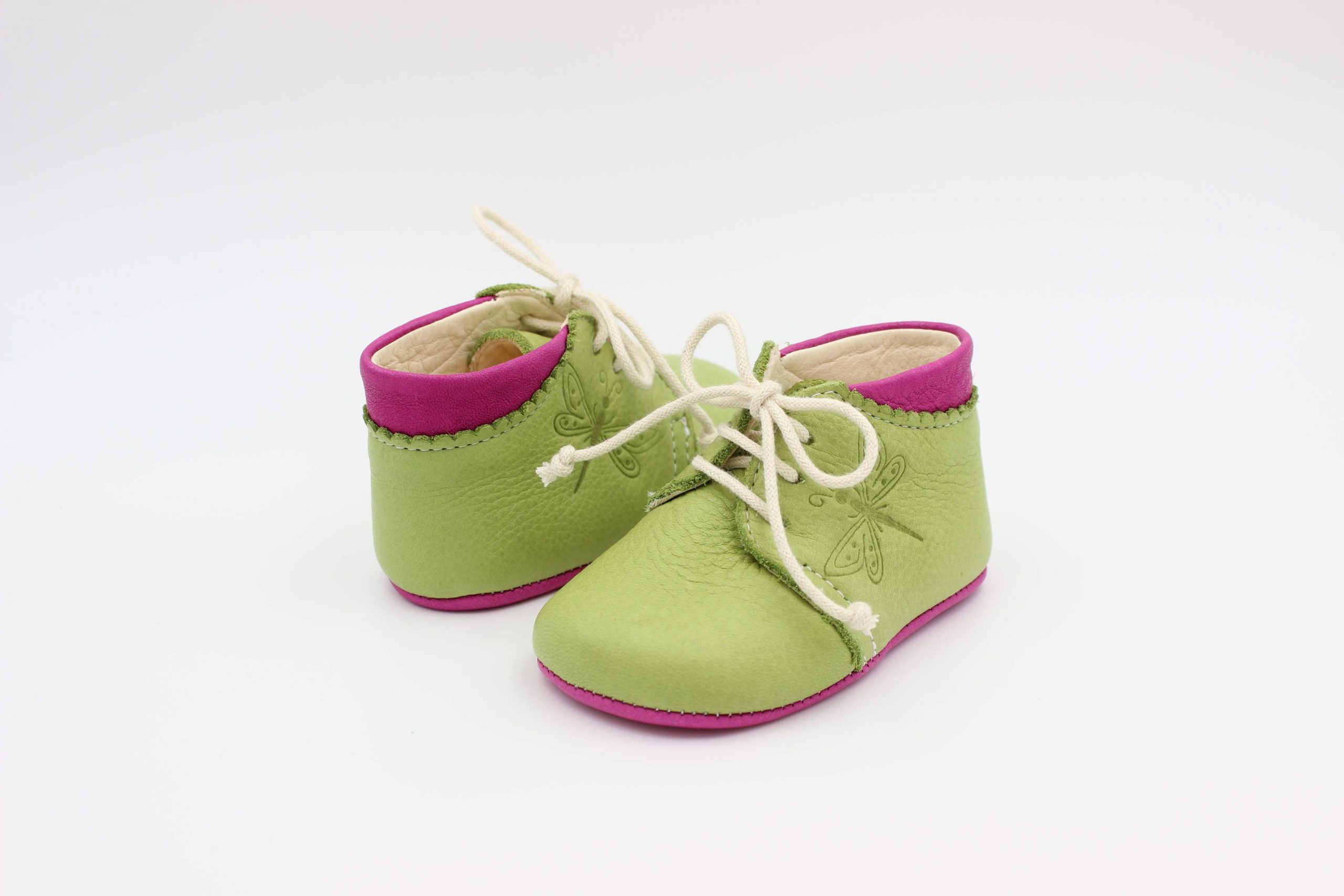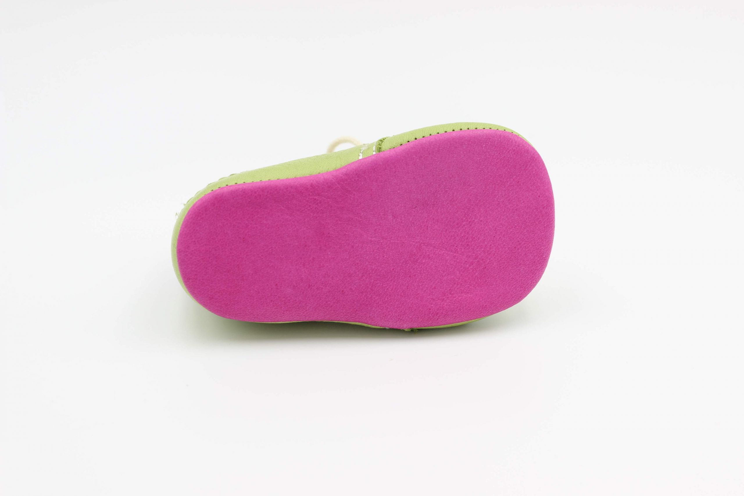 Viento para mover tus alas y llevar tu pie al interior de esta preciosa botita con adorno de festón en la caña y perfecto cierre de cordones. Vendaval de colores para alegrar la mirada de tu Bebé.